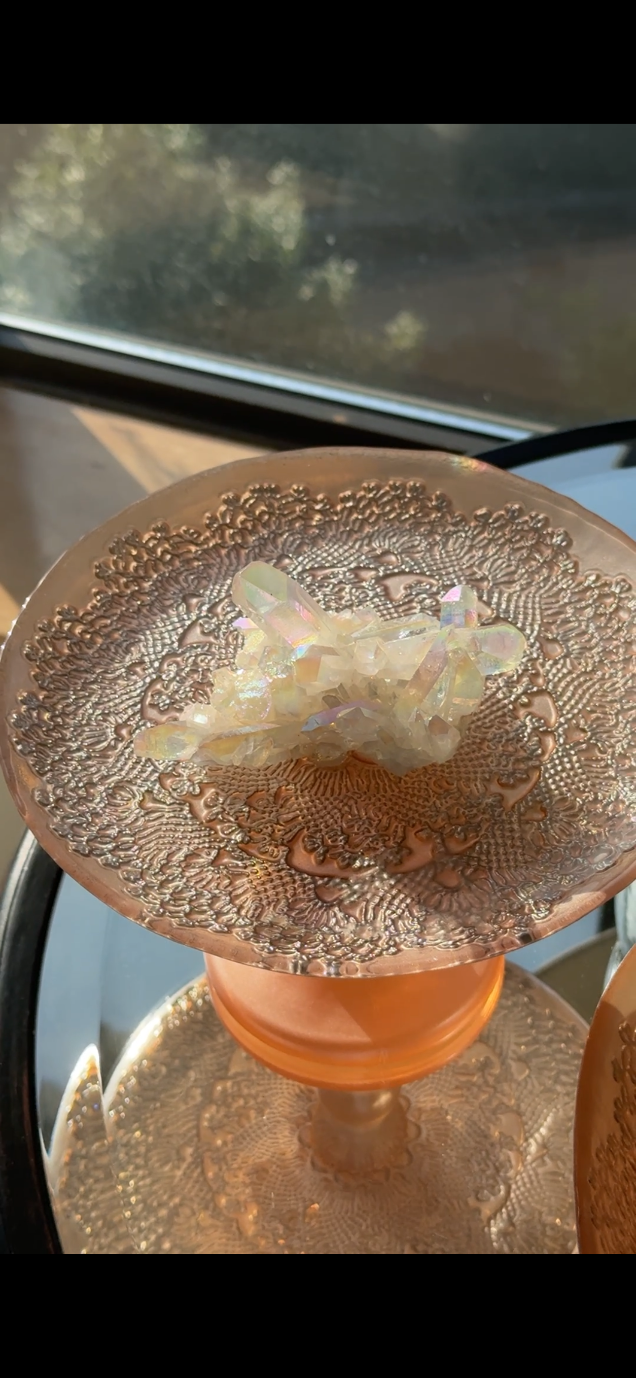 - Natural quartz with angel aura finish