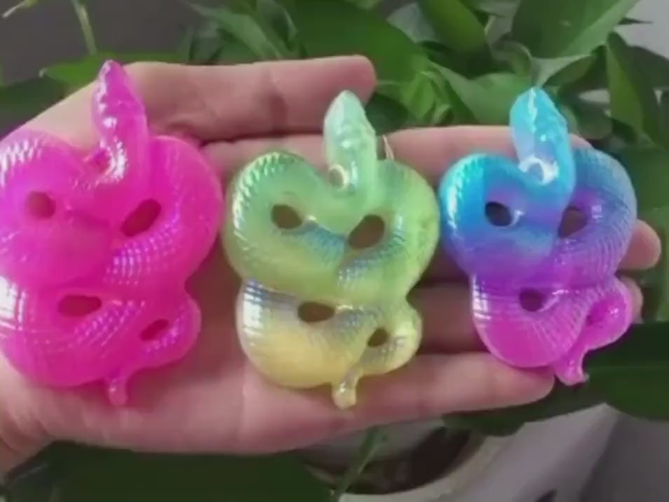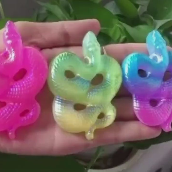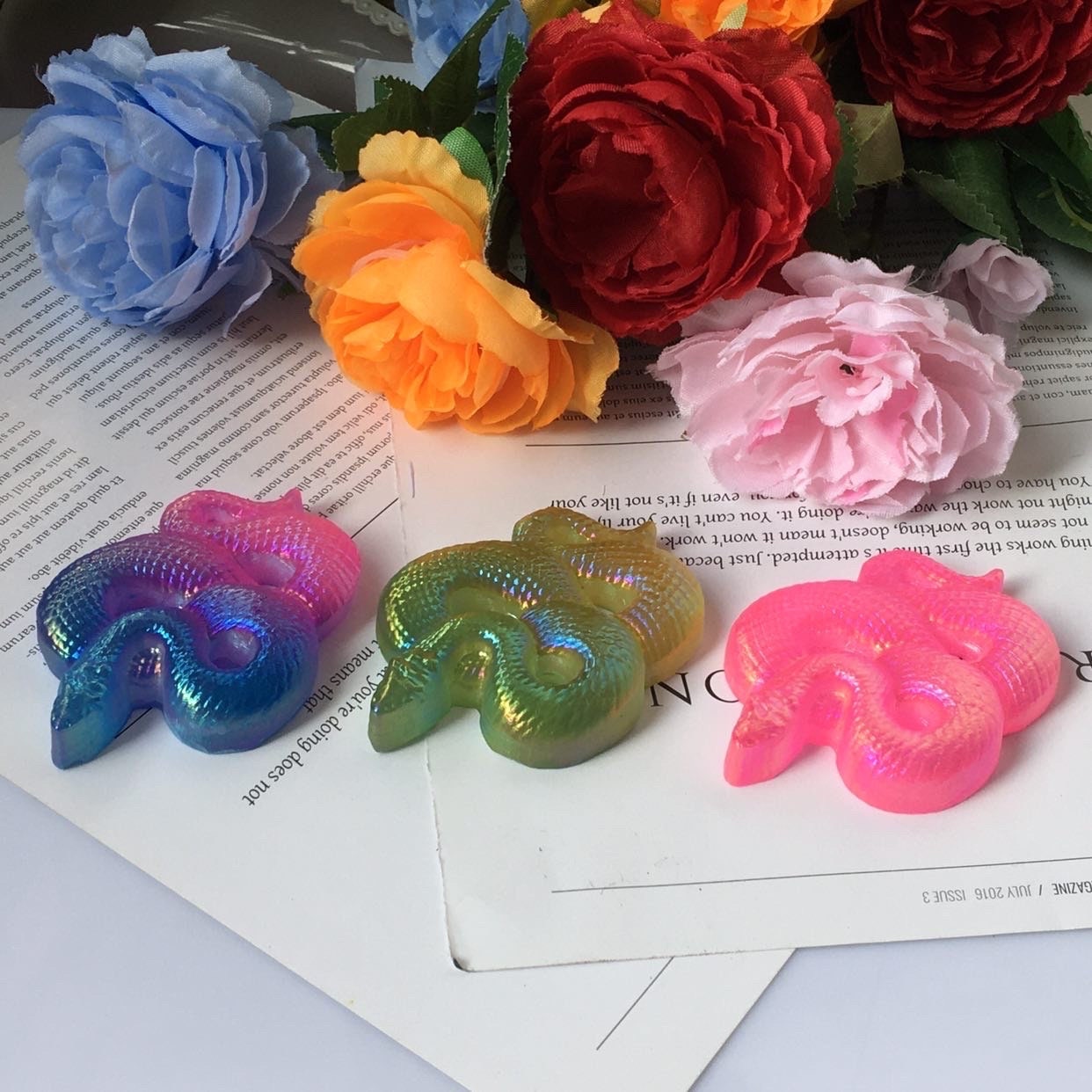 The Angel Aura Selenite Snake makes a beautiful gift. Made from selenite, plated with a bright color and dipped in Angel Aura for a rainbow glow.