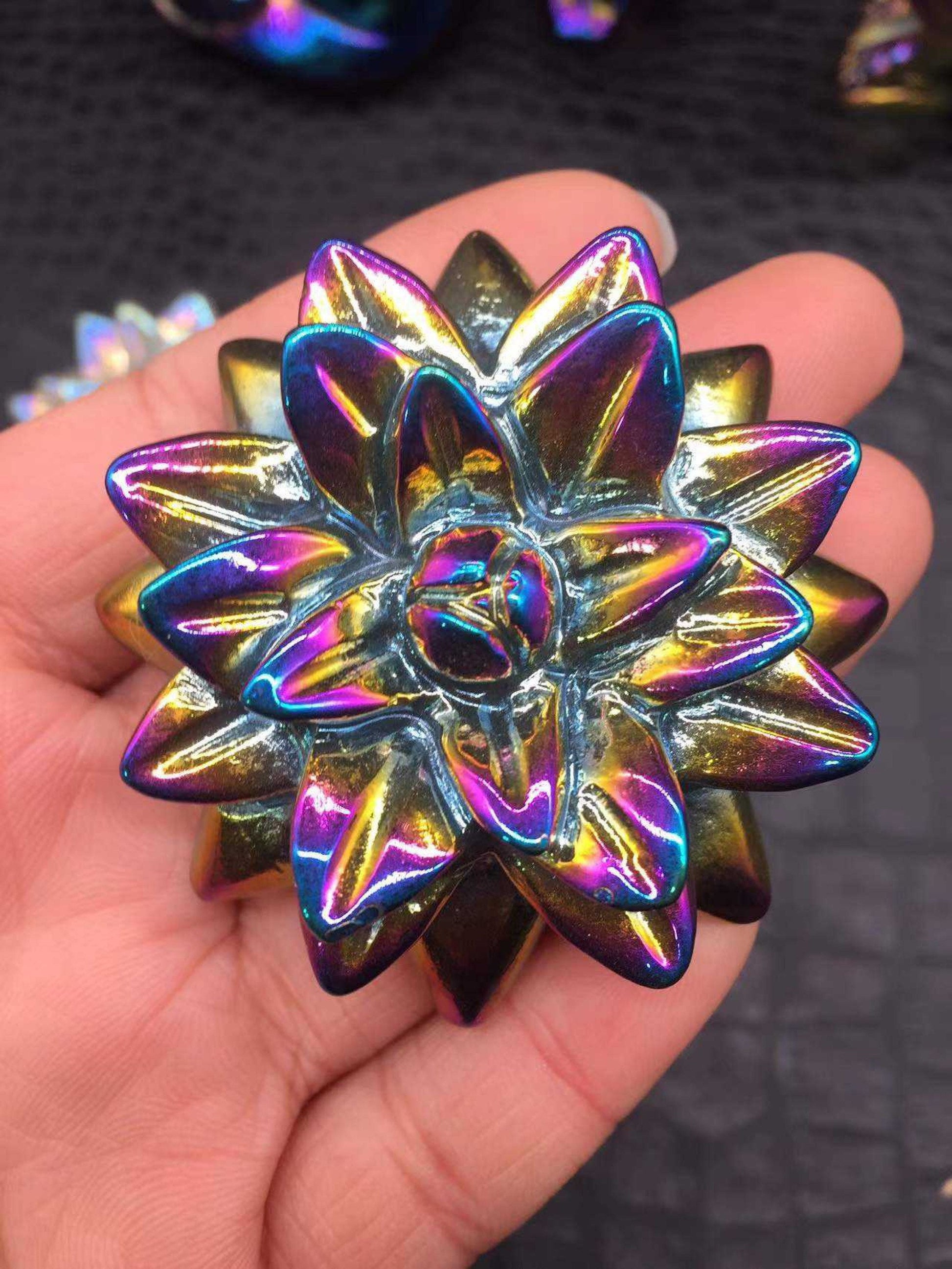These high quality Succulent Flower Carvings have been double dipped in Angel Aura, and feature a beautiful rainbow sheen over the beautifully detailed plant.