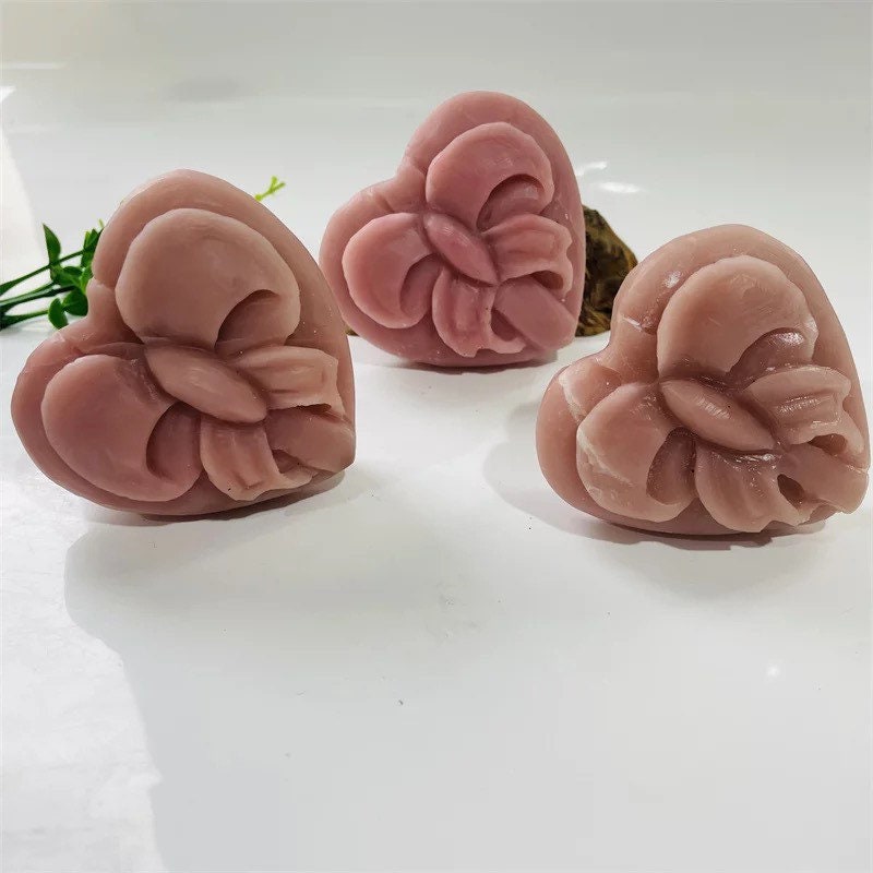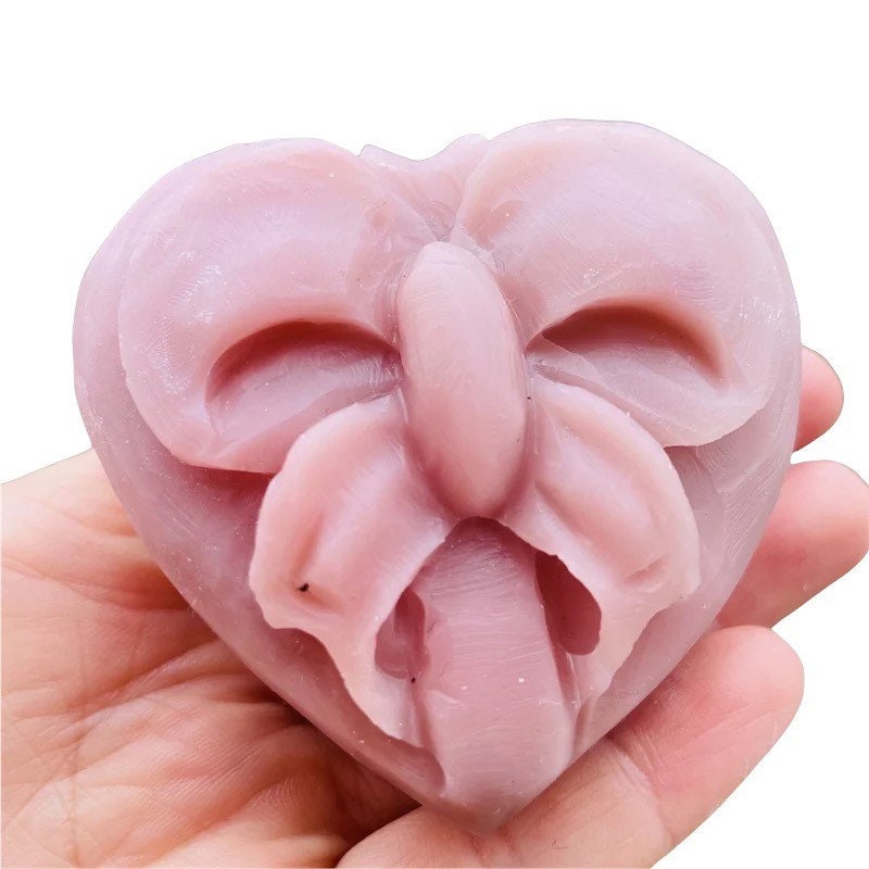 Pink Opal Heart with Bow Carving, Crystal Love Stone, Forever Flowers, Heart Chakra, Mother’s Day Gift