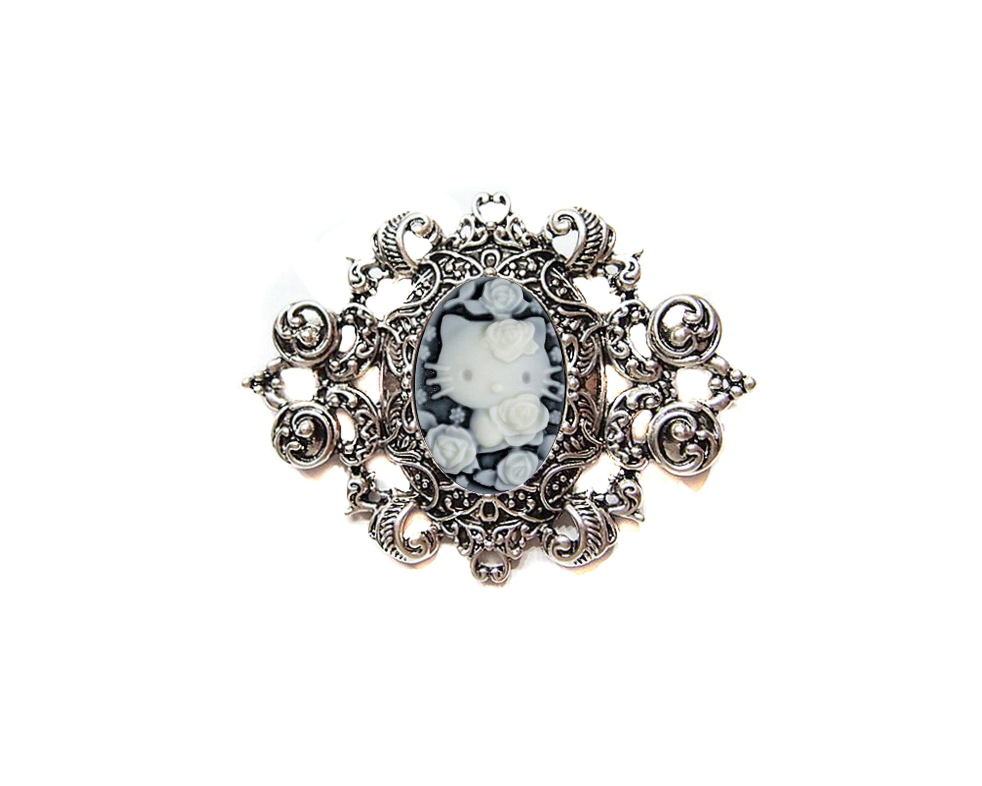 Matching bracelet: https://www.etsy.com/listing/897461142/kitty-cameo-bracelet-filigree-cuff